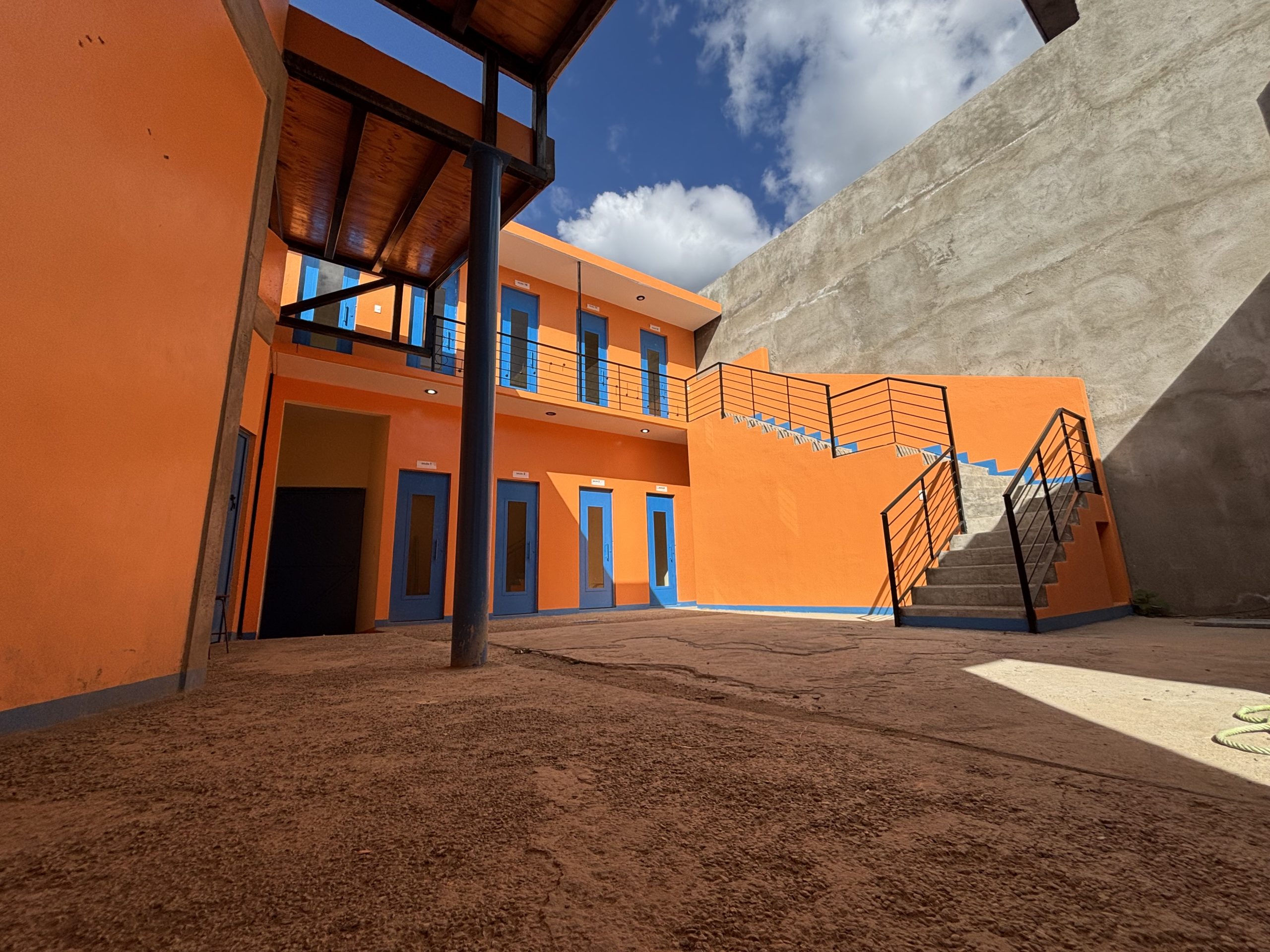 The construction of two rehearsal rooms of 64 m2 and two storage rooms for string and wind instruments has been completed: students can now develop their talent as young musicians in much better conditions. A second phase of work is completed in 2022. This time, it is the covered area that is enlarged. General rehearsals for the entire orchestra now take place outdoors, sheltered from the sun or rain.