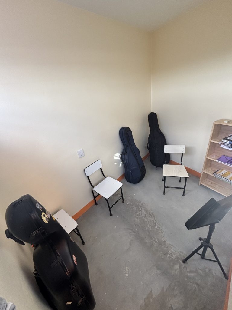 The Santa Cecilia music school has just inaugurated 12 ‘cubicles’ funded by Don du Choeur to offer students the opportunity to practise solo or in small groups. This is a huge step forward because, in the Vicente Guerrero shanty town, family housing is not conducive to learning an instrument.
